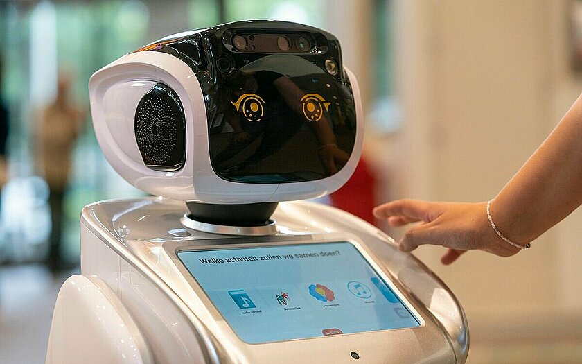 A cheerful machine rolls into a room of a care home. Mrs Willemsen is a bit absent-minded, but this little robot recognises her and helps her with 'smart modules' to train her memory. This rascal, called SARA, knows exactly which music will make Ms Willem