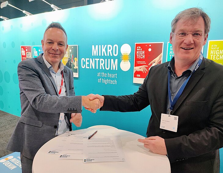 Mikrocentrum en Brainport Development gaan samenwerken op het gebied van Additive Manufacturing (AM). Om dat doel dichterbij te brengen hebben Bert-Jan Woertman en Paul van Nunen namens beide partijen tijdens de Precisiebeurs een gezamenlijke intentieverklaring ondertekend.