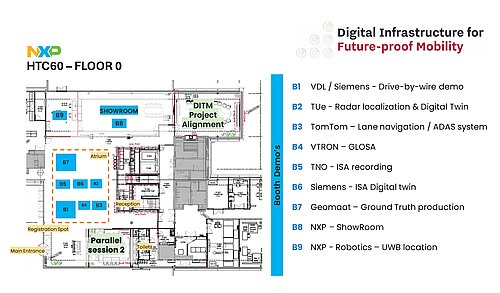Je bent welkom bij NXP in Eindhoven voor een dag vol demonstraties — binnen én buiten — rond digitale infrastructuur voor geautomatiseerd vervoer. Van radarlocalisatie tot teleoperatie en lane navigation: je ziet het in actie.