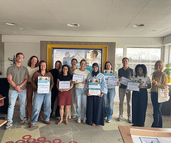 Ook blijven we je inspireren, om het programma afwisselend te houden. Na 20 weken oefenen wordt het traject feestelijk afgesloten en ontvangt zowel de taalbuddy als de anderstalige collega een certificaat.
