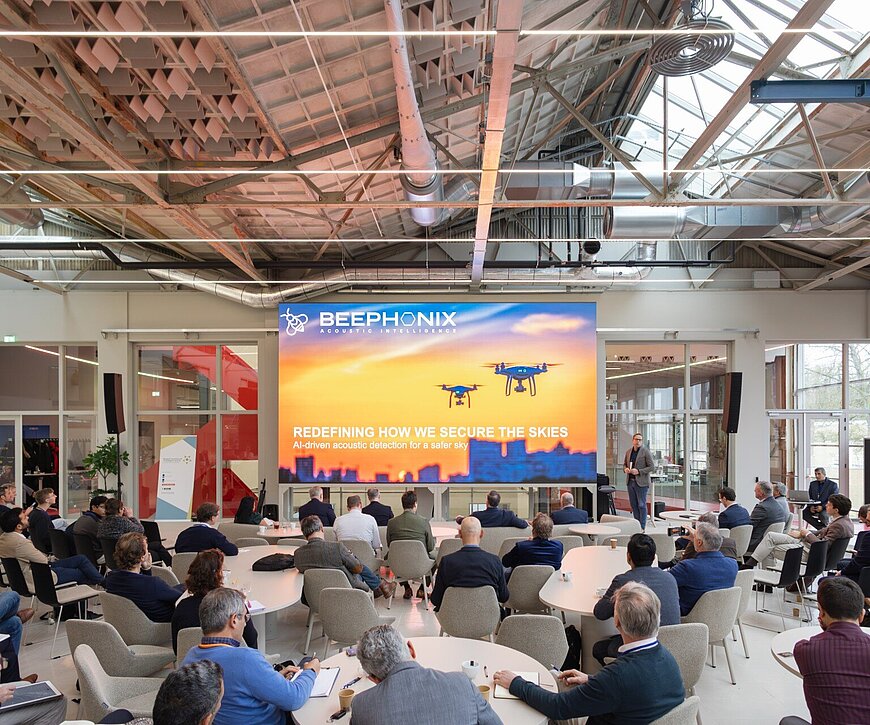 In de uitnodigingen ging het over partnerschappen, innovatie, technologische ideevorming en de kansen voor 'dual use'. Het programma beloofde baanbrekende pitches over drones, counter-UAS, fotonica, AI, sensoren en geavanceerde lucht- en ruimtevaartintegratie. De locatie (MELT bij Avular) riep het kenmerkende optimisme van Brainport op: ambitieuze oprichters die transformatieve oplossingen van de volgende generatie pitchen.