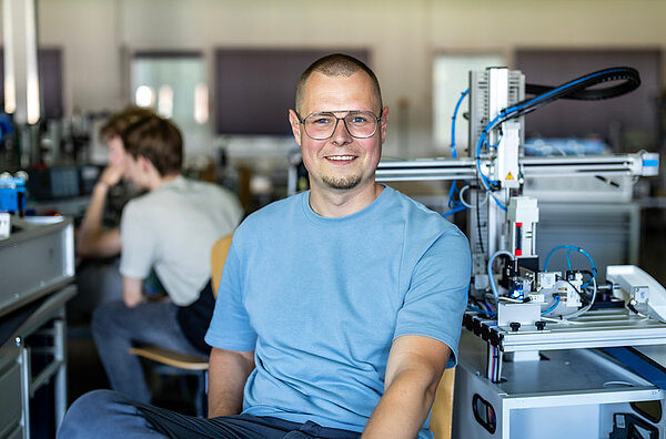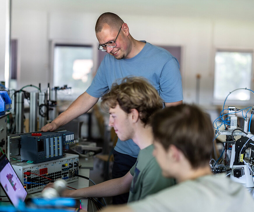 Dennis geniet van zijn vak, dat is wel duidelijk. Hij is docent Mechatronica bij de opleiding Summa Engineering. ‘Ik geef voornamelijk besturingstechniek en elektrotechnische vakken. Dit is een niveau-4 opleiding die vier jaar duurt. Studenten kunnen zich specialiseren in de maakindustrie, o.a. in het productieproces van machine-onderdelen en in de installatietechniek. Als ze klaar zijn? Dan hebben ze een mooie basis om in een bedrijf aan de slag te gaan en om hun kennis te verdiepen.’