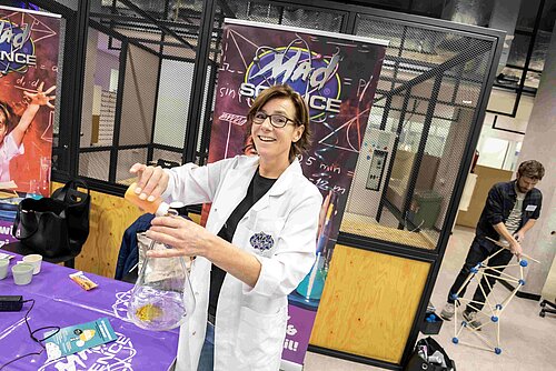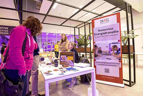 Wat zijn de mogelijkheden van techniek en technologie binnen het basis-, voortgezet- en mbo-onderwijs? En op welke (laagdrempelige) manieren kun je hier als onderwijsprofessional in de klas mee aan de slag?Voor het antwoord op die (en meer) vragen bezoeken in totaal ruim driehonderd mensen het Kennisfestival Onderwijs & Technologie. In het Nexus-gebouw in Eindhoven kunnen zij op meerdere etages ideeën opdoen, of dat nu bij een workshop is, op het beleefplein of op de inspiratiemarkt. Hard nodig, vindt Ella Hueting, directeur van de Fontys School of Engineering. ‘Veel onderwijsprofessionals voelen een drempel om met techniek en technologie aan de slag te gaan. Toch kan dat al op een heel laagdrempelige manier, door het bijvoorbeeld te koppelen aan creatieve vakken.’