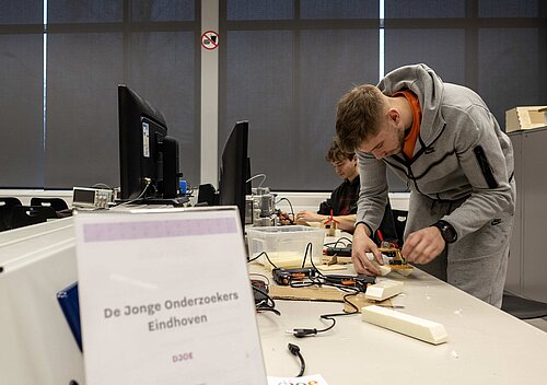 Het Kennisfestival Onderwijs & Technologie vond donderdag 25 januari plaats in het Nexus-gebouw van Fontys Hogeschool Eindhoven. Onderwijsprofessionals uit het basisonderwijs, middelbaar onderwijs en mbo werden er op weg geholpen om in hun klas met techniek en technologie aan de slag te gaan. In totaal waren ruim 500 participanten bij het festival betrokken: van bezoeker tot workshopgever en van organisatie tot deelnemer aan de inspiratiemarkt.
