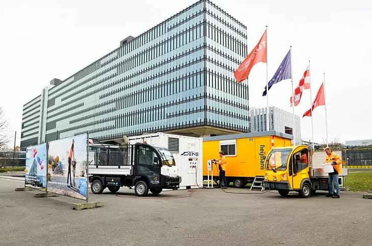 Dens uit Helmond gaat samen met bouwer Heijmans zijn emissieloze aggregaat testen op bouwplaatsen. Met de generator op basis van mierenzuur is succesvol proefgedraaid op de campus van de TU/e.